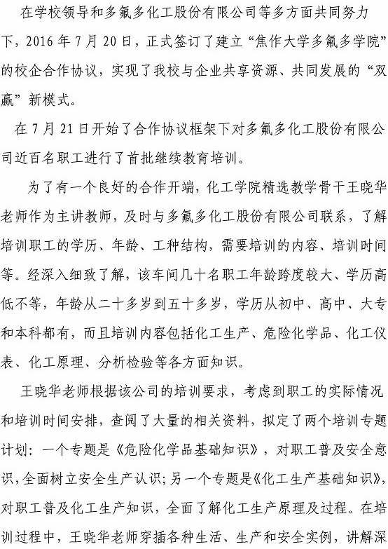 太阳成集团tyc与多氟多化工股份有限公司校企合作跨出第一步