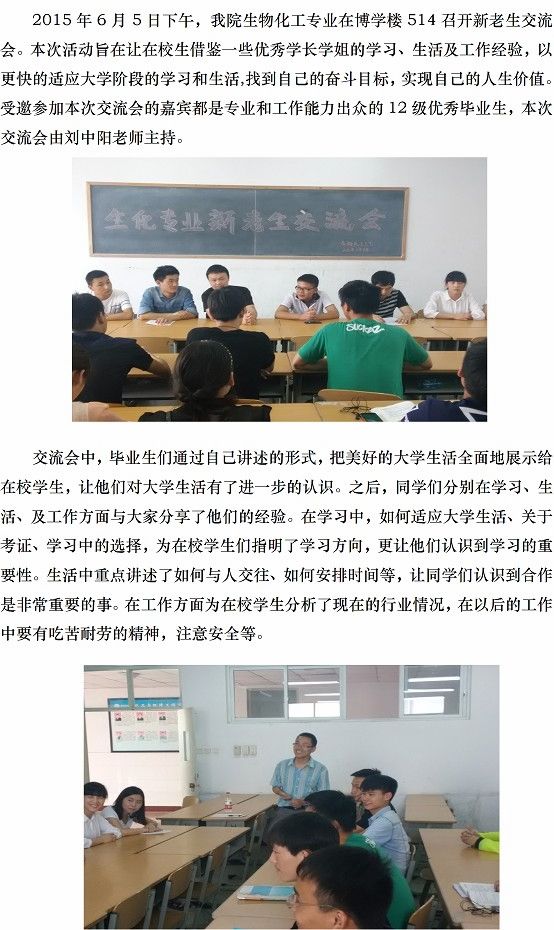 生物化工工艺专业新老生交流会