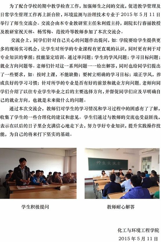 太阳成集团tyc33455cc环境监测与治理技术专业举行师生交流会