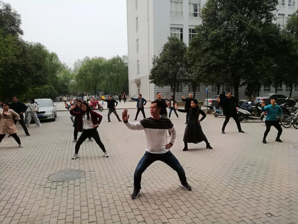春光明媚,随着公司全民运动会的临近,太阳成集团tyc33455cc为活跃职工文化生活,增强教职工的身体素质,积极响应校工会号召,由公司工会牵头,坚持利用下午下班时间开展练习太极拳活动,在全公司掀起了练习太极拳活动的高潮。