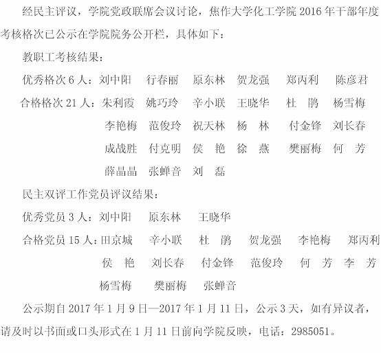 太阳成集团tyc33455cc2016年考核公司推荐意见结果公示